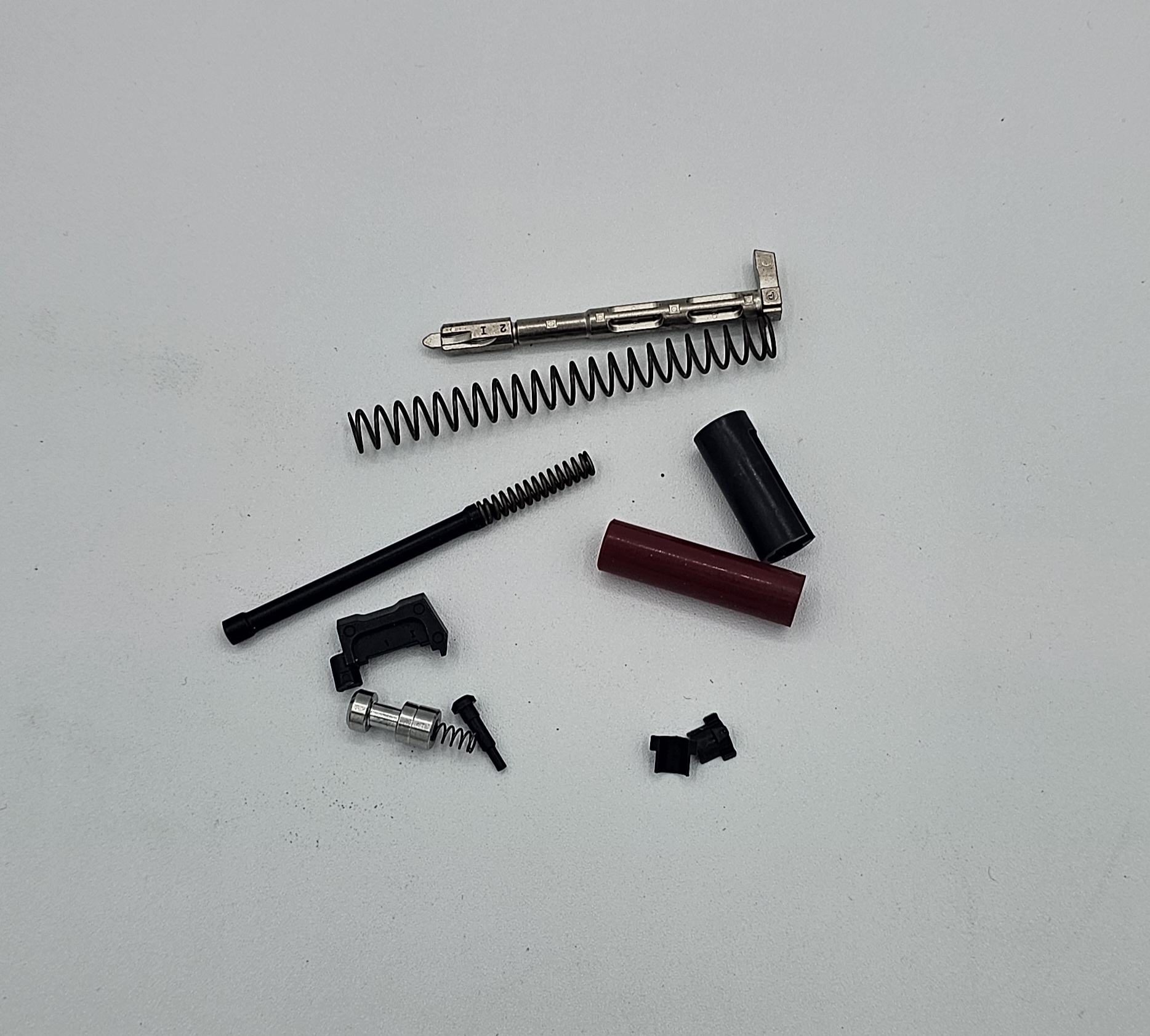 - PF940-Series Striker Channel Liner, Striker Spacer Sleeve, Striker Spring Cups (2), and Extractor Depressor Plunger Bearing (All available in Red/grey)