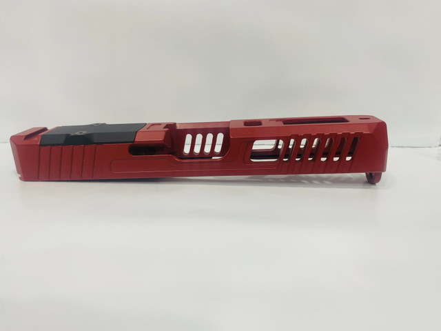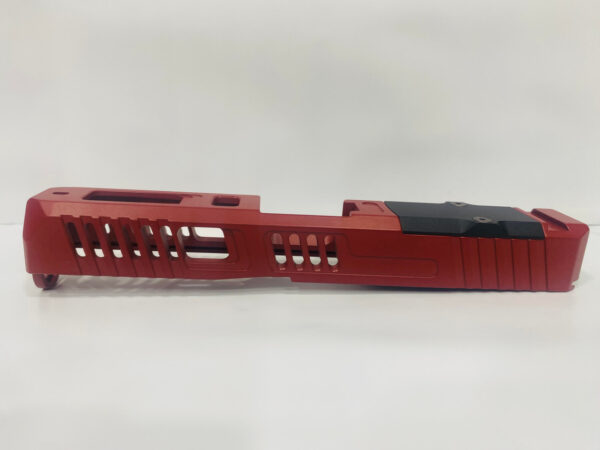 Take your Glock 19 build to the next level with the SM19 Flash Crimson Stripped Slide by Stiffler Manufacturing. With a lightweight window cut, Trijicon RMR footprint, and Crimson Cerakote finish, this slide has tactical functionality and style.