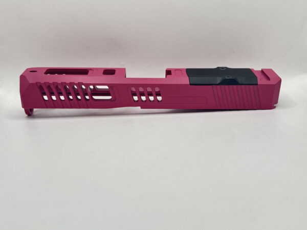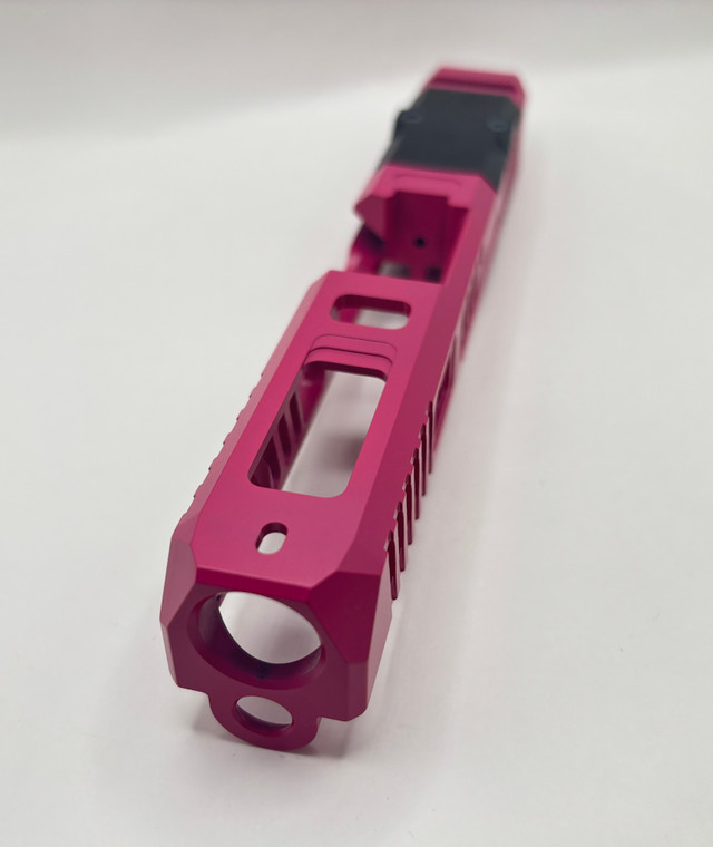 The SM19 Flash Sig Pink Stripped Slide by Stiffler Manufacturing is a top-tier upgrade for your Glock-style pistol build. With a lightweight window-cut design and bold Sig Pink Cerakote finish, it combines aggressive styling with uncompromising functionality.