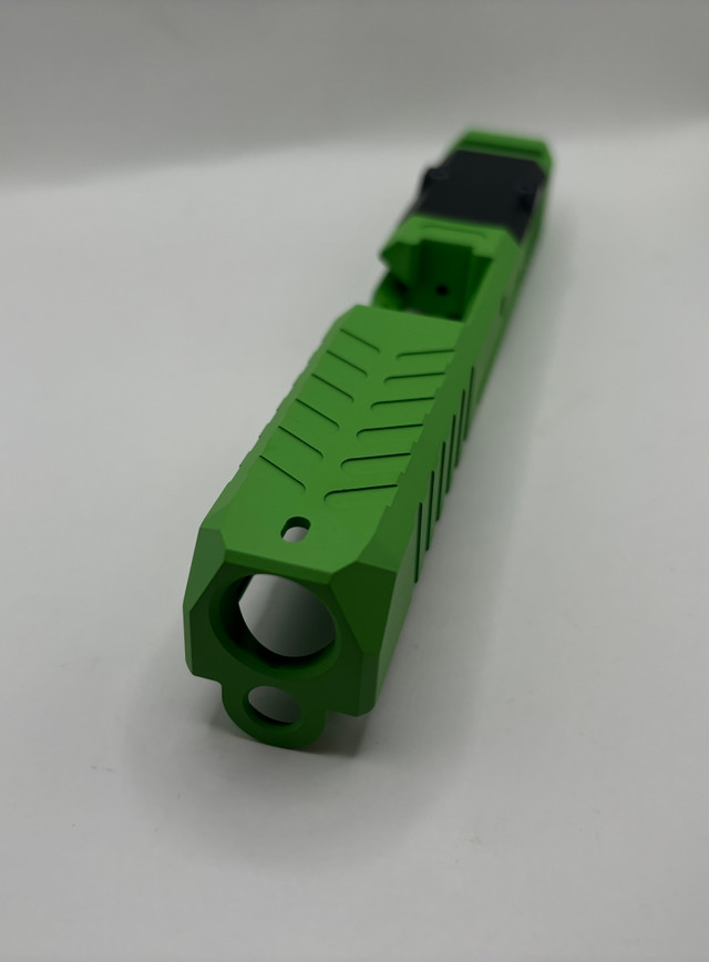 The SM19 Helot Green Mamba Stripped Slide is engineered for Glock 19 builders who want proven strength and reliable performance. Machined from U.S.-sourced 17-4 stainless steel, coated in-house with corrosion-resistant Green Mamba Cerakote, and ready for Trijicon RMR or Holosun 507C X2 optics. NOTICE: Not compatible with ported barrels.