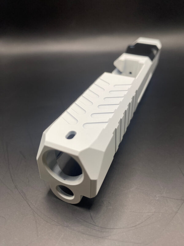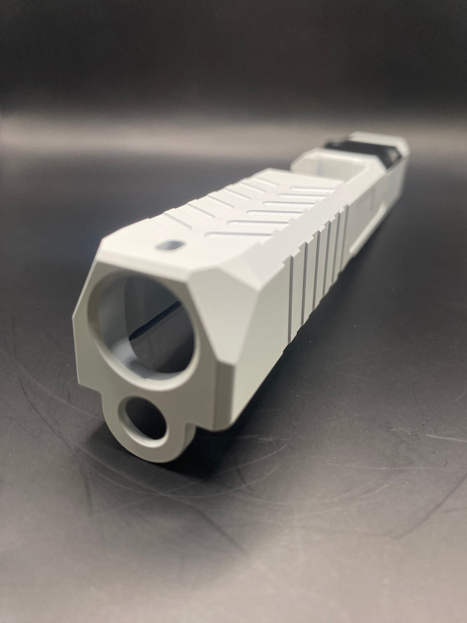 The SM19 Helot Stormtrooper White Stripped Slide is crafted for Glock 19 builders who want reliable function and a standout Stormtrooper White Cerakote finish. Machined from certified 17-4 stainless steel sourced in the USA, finished in-house, and designed for Trijicon RMR or Holosun optics. NOTICE: Not compatible with ported barrels.